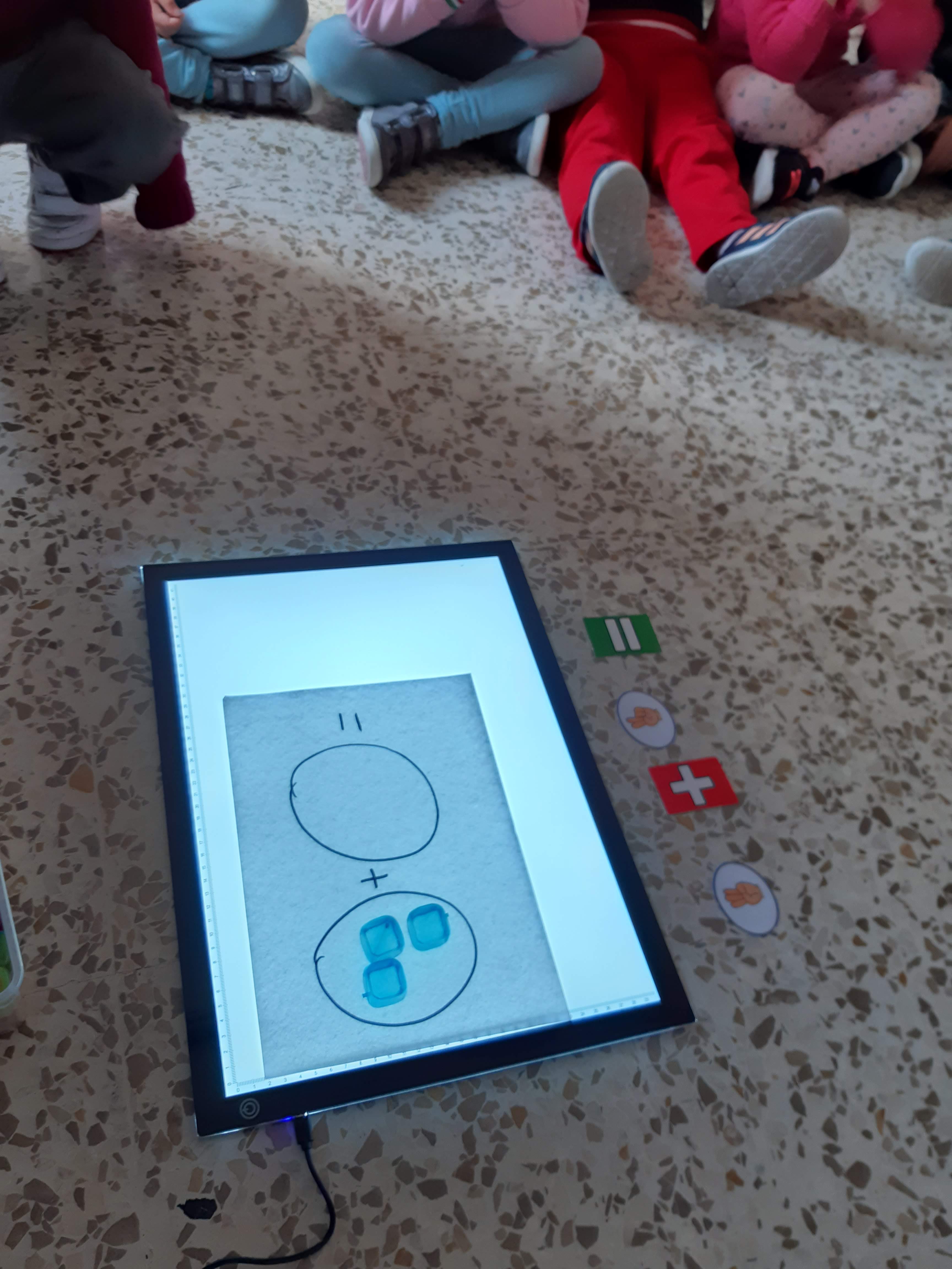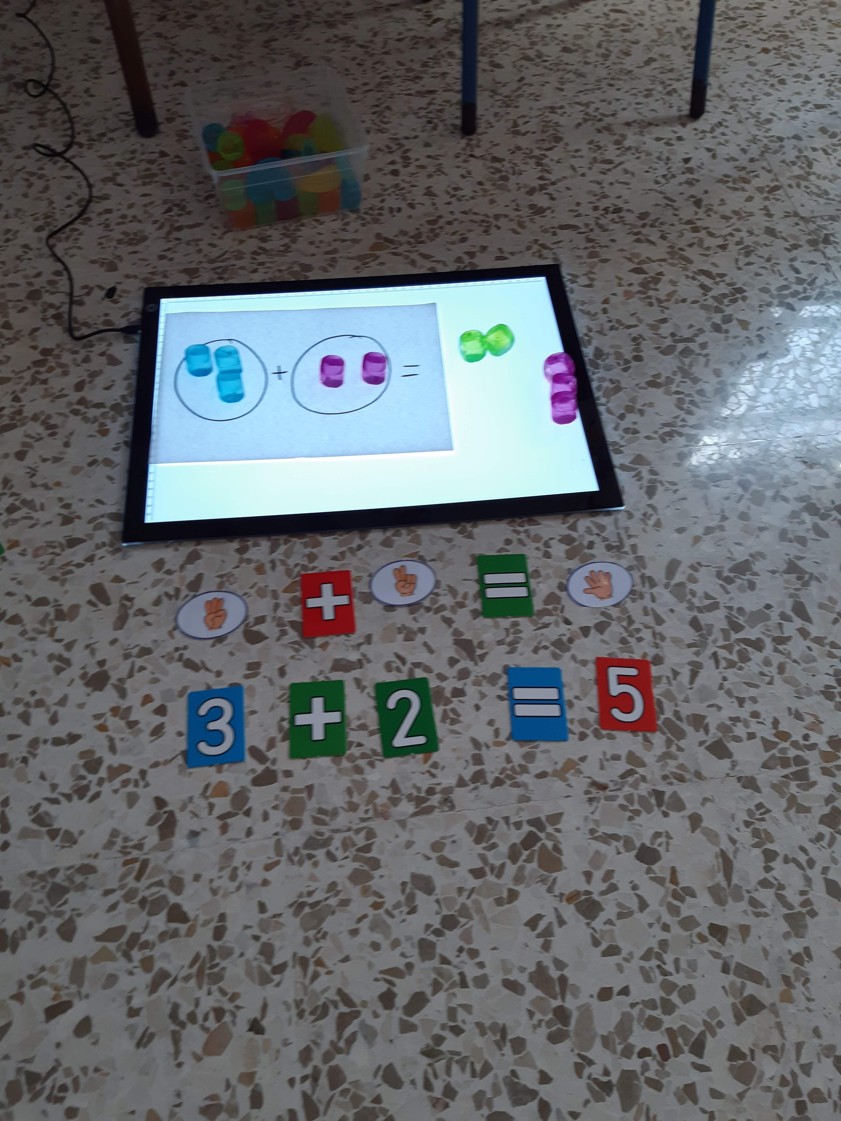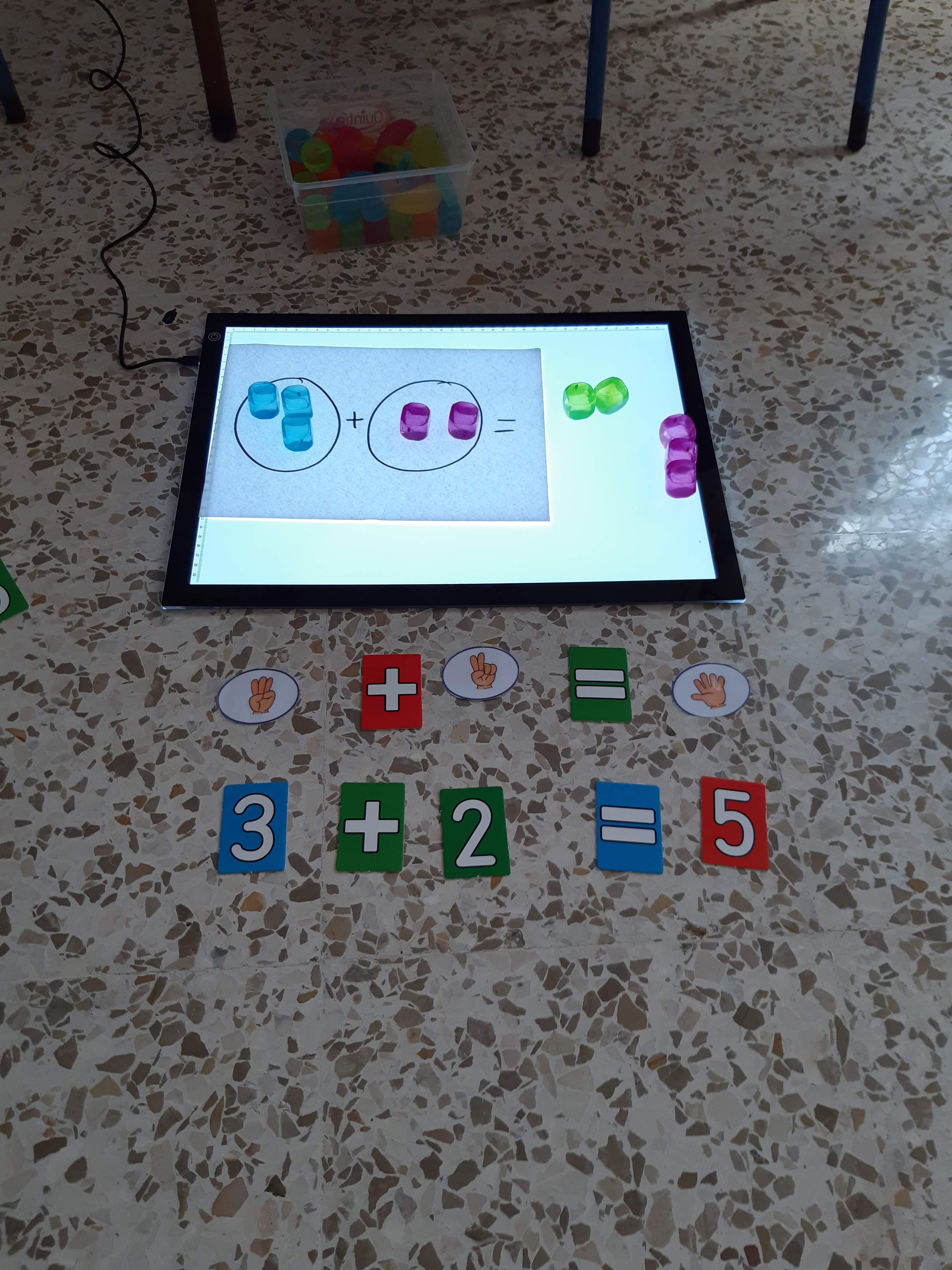 Una vez que vamos interiorizando las operaciones pasamos a abstraerlas y escribirlas, para ello usamos la mesa de luz, de este modo es mucho más motivador para nosotros.