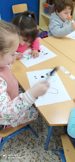 Como ya estamos en el segundo trimestre vamos ampliando más contenidos y es la asociación de grafía cantidad partiendo del concepto que os mencionaba anteriormente Samuel García «pon tantos pompones como gorritos hay dibujados en la ficha» en este caso eran 2 pompones, cuenta, pone sus dedos y luego coloca los pompones donde le indico.